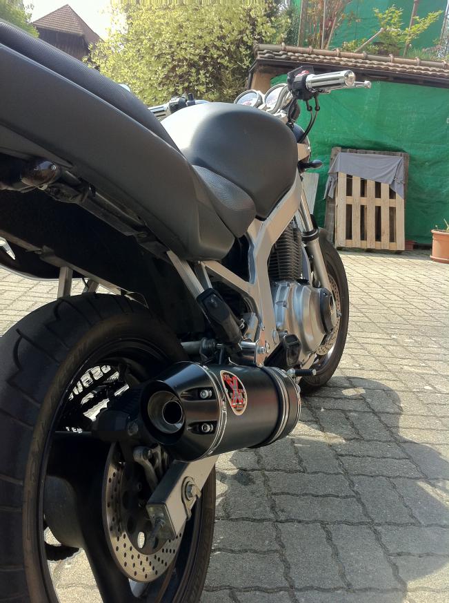 ich hab meinen von dem hier: d.schiele motorcycles and parts d.schiele@web.de Tel: 040/60097729 extrem freundlich, schneller Versand da Auspuff auf Lager und kostenloser Versand. Ohne ist schön dumpf, aber läuft nicht richtig!