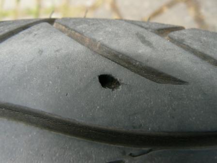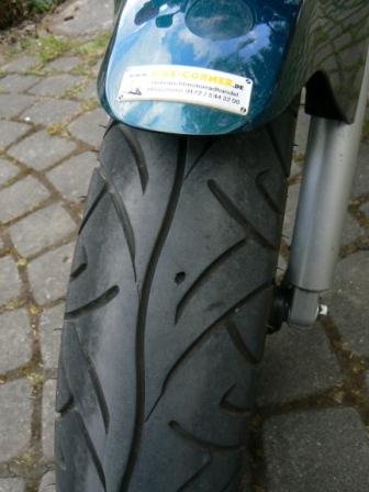 Nachdem mir vor ein paar Jahren aus dem vorderen Pirelli Sport Demon ein kreisrundes Stück Gummi weggeflogen ist, hatte ich auch bei Pirelli angefragt: Unfreundlicher Ansprechpartner, kein Interesse am Schadensbild, auf Kulanz hatte ich schon gar nicht gehofft.