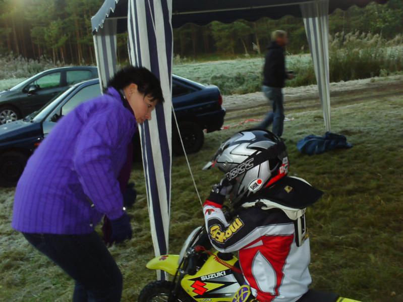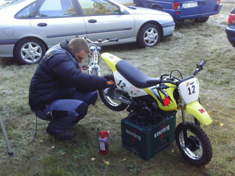 Bild 1: Kurz vorm ersten Wertungslauf (8.15 Uhr!!!), 3 Grad, Papa betankt das Motorrad...