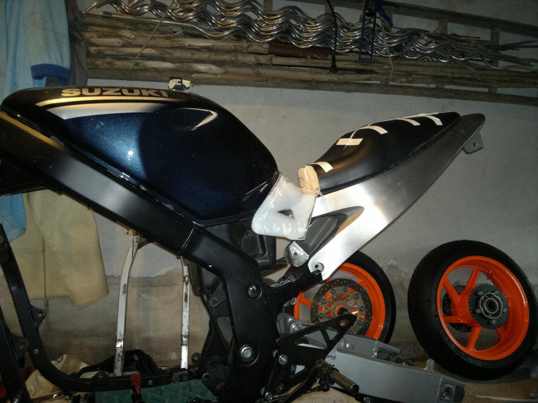 Schwinge ist da und schon eingebaut mit R6 Federbein, 185er Knochen und GSXR Umlenkung!