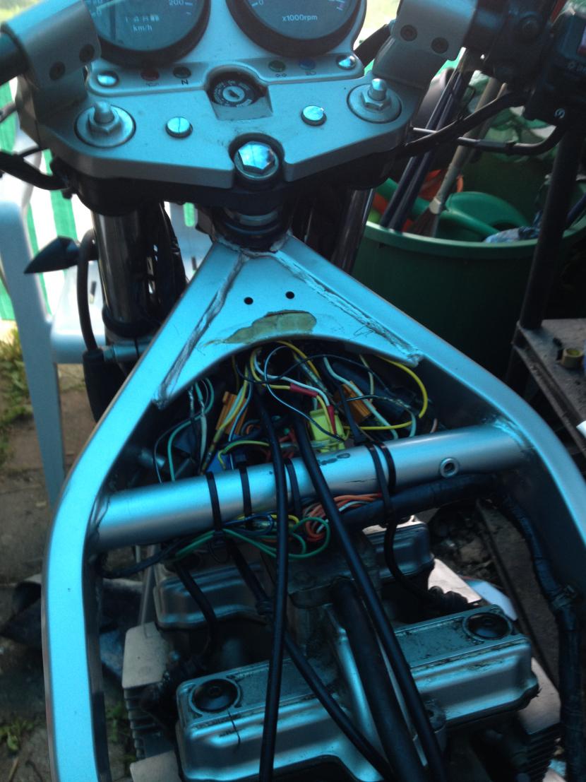 So, Kabelbaum ist fertig. Jetzt soll nur noch einer meiner zukünftigen Schwager nochmal einen Blick drauf werfen und dann kommt der Tank wieder drauf. Das Licht hab ich auch schon getestet um zu sehen ob alles richtig angeschossen/verbunden ist. Funktioniert alles.