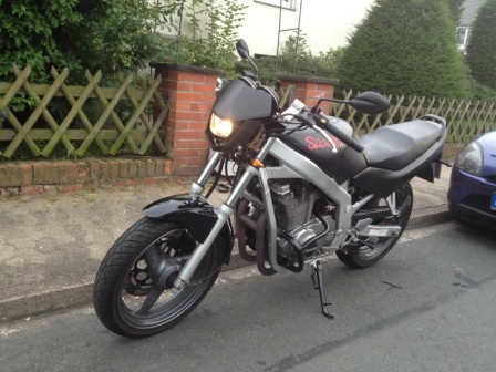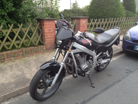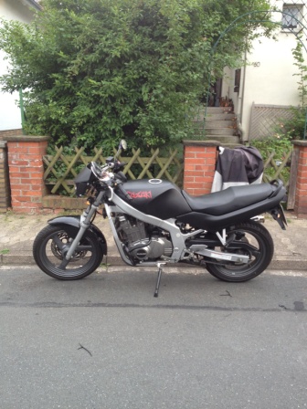 So es geht langsam voran. Hab mir heute weil ich ja keine Garage oder so hab im Garten einen unterstand gebaut damit ich nicht auf Sonne angewiesen bin. Hab auch schon Batterie, Tank und Verkleidung abgebaut und die ersten Kabel entwirrt und nach hinten gezogen.