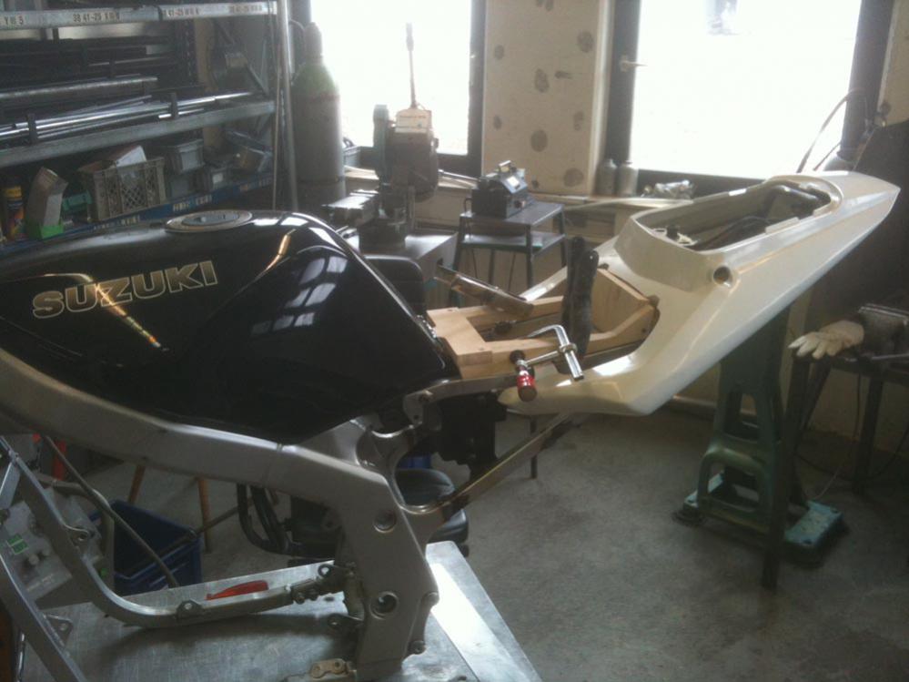 Nach Flex-Schleif-Schweis Arbeit in metal und Schneid-Schleif-Kleeb Arbeit in ABS plastik passt ein R6 Heck Auch auf en GS 500.