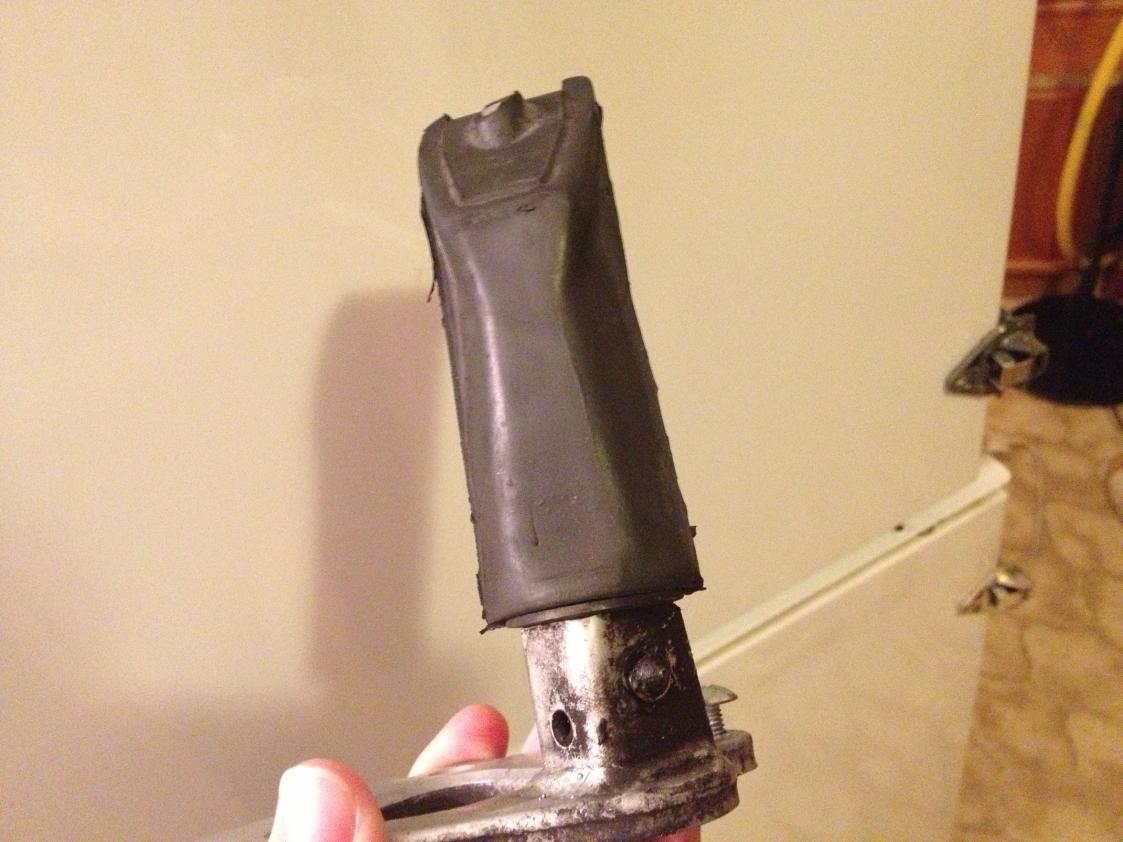 Die sind nicht verschraubt, das Gummi ist auf den Grundkörper aufgeschoben. Die Raste ist am Rastenträger mit nem Bolzen gesichert. Und die Raste ist auch beweglich gelagert, sodass es beim Aufsetzen nicht zum Aushebeln kommt.