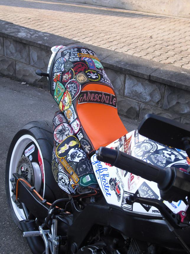 zu 1: Ging um das Probeblech mit den Marken drauf. Für den Rest musste Kai fragen zu 2: Ja, verstehst mich falsch ![]() zu 3: Haben beide was, mir persönlich ist die Doppelversion lieber. Schön, dass Dir Tasche und Sticker gefallen. Im Sommer gehts weiter, aber da muss ich erst noch den neuen Tank pimpen.