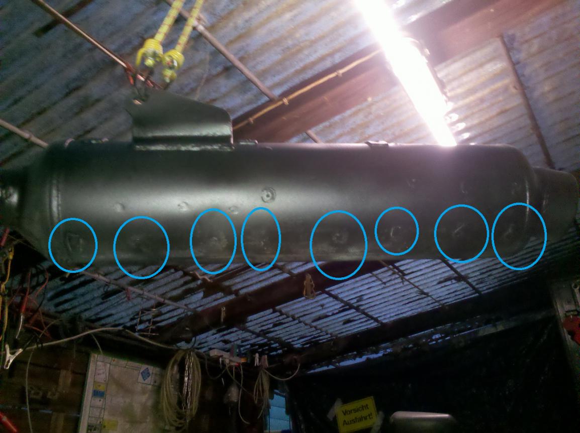 Hab das gleich mal umgesetzt, rot Nieten, diese hab ich ausgebohrt, blau Schweißpunkte, mit dem Lötkolben heiß gemacht und dann mit einem Schraubenzieher abgekloppt und mit dem Hammer den Rest etwas platt gehauen. Unten das wird man eh nie sehen...