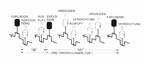 Vorteil beim Viertaktmotor ist die gleichmäßige Kraftentfaltung, denn der Zündabstand der beiden Zylinder ist mit 360 Grad symmetrisch.