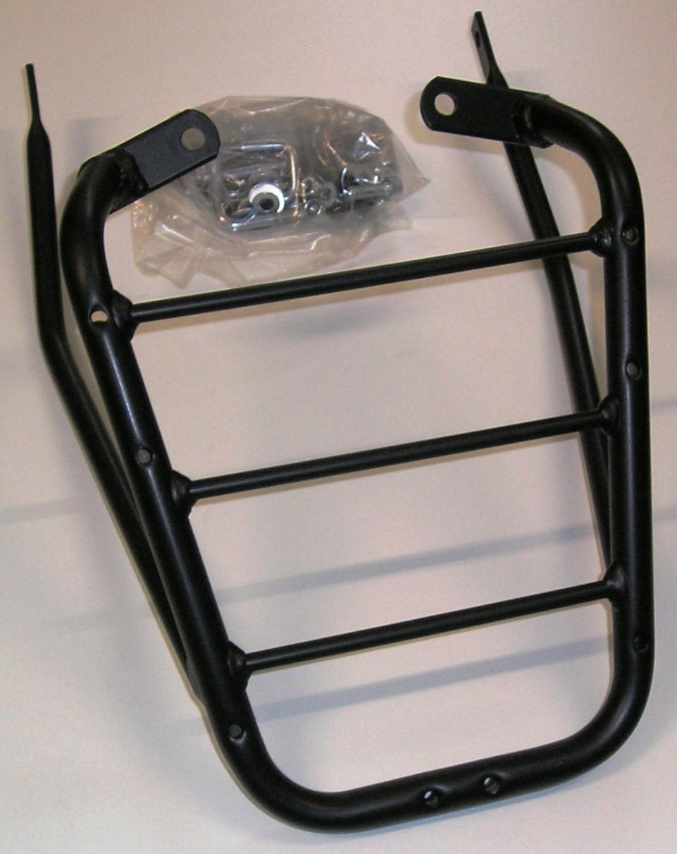 Hier mal ein Bild der besagtem Konstruktion. Es ist extrem stabil! Ich nutze den Gepäckhalter als Griff zum auf- und abbocken (Hauptständer) der GS. Das wackelt und ruckelt nichts. Die angesprochenen 60 Kilogramm sind sehr warscheinlich machbar