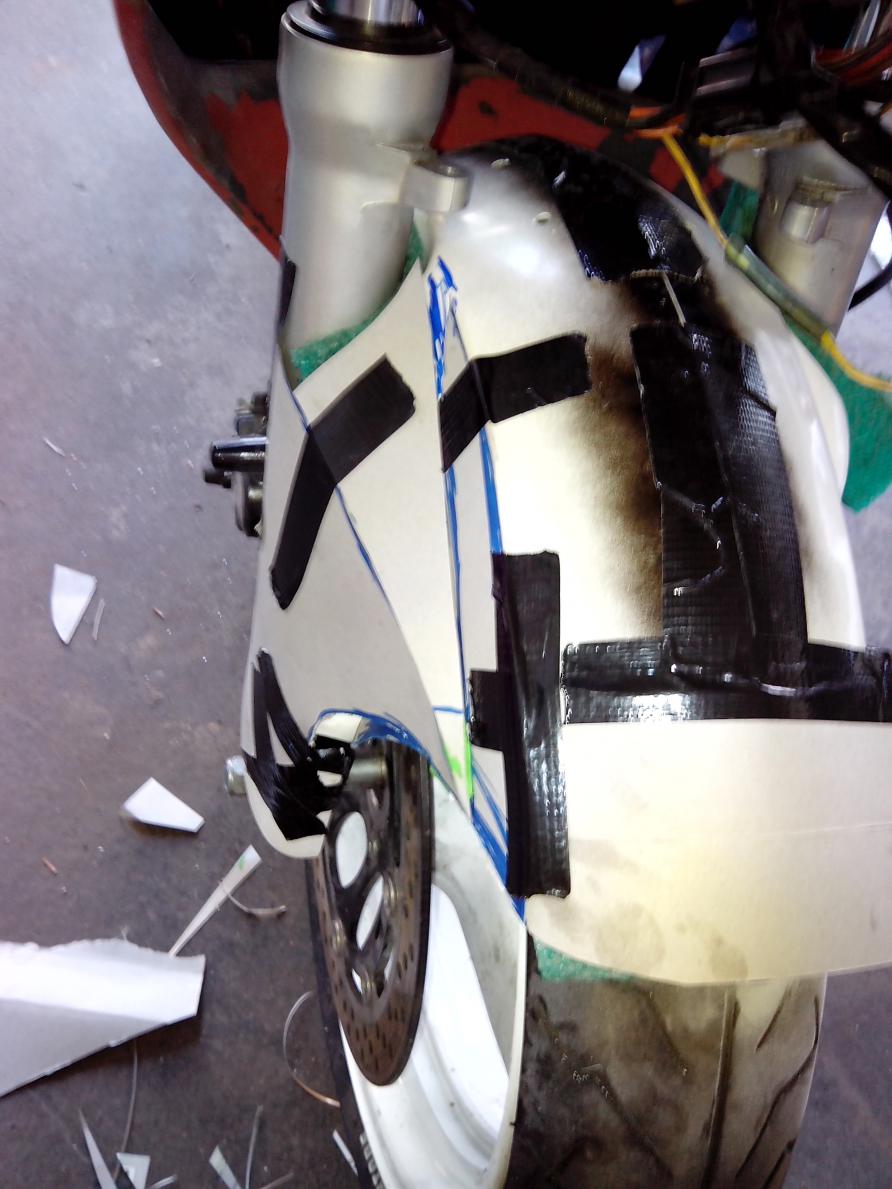 Wollte zwecks Optik auch den Frontfender der Rizla-Suzuki nachbauen um auch die Gabel etwas zu tarnen, weiß allerdings nicht wie ich das mit dem TÜV machen soll ohne jegliches Gutachten