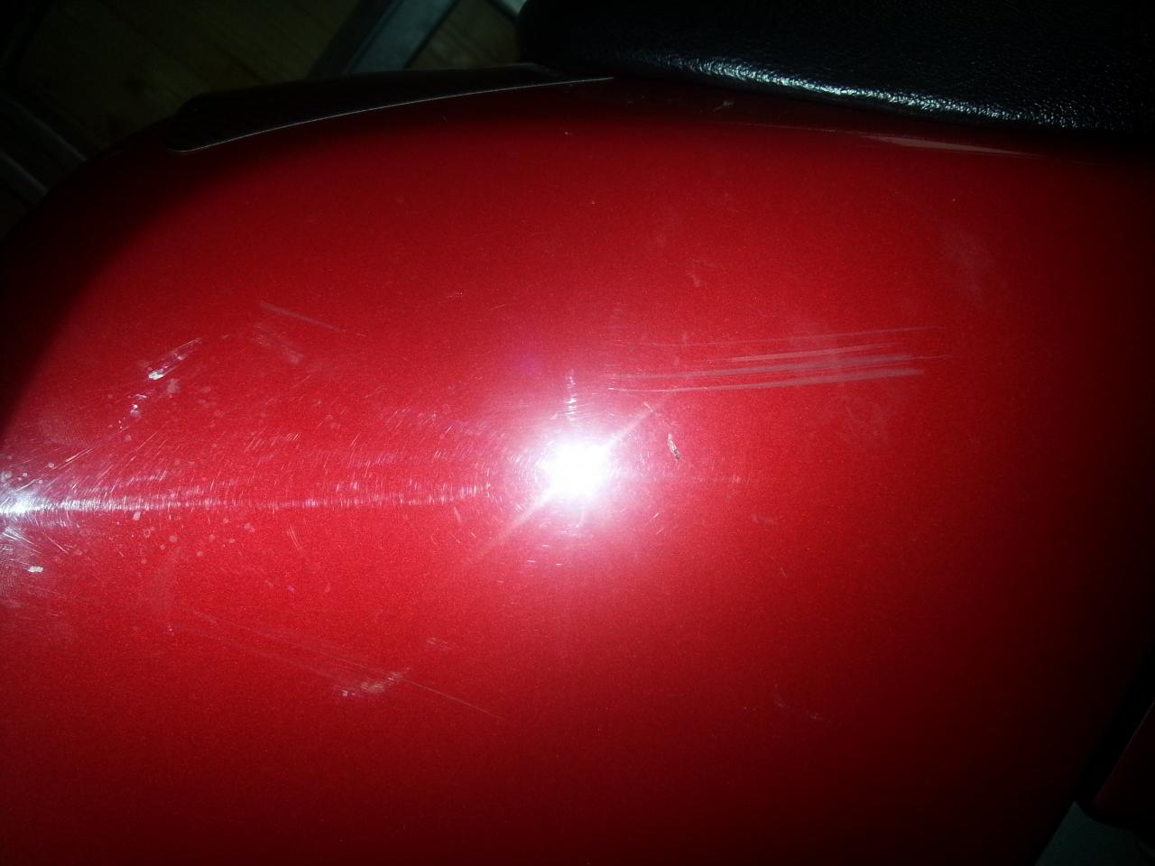 Einzige Mackel: Wegen eines Rutschers ist der Auspuff zerkratzt und auf der linken Seite des Tanks, in der Ausbuchtung für Knie sind 2 Kratzer und das Lenkerschloss funktioniert nicht mehr.