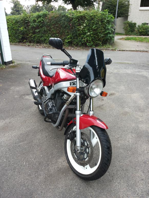 Haben letzten und diesen Samstag neue Bremsen eingebaut; für vorn und hinten (ja, natürlich mit kennbarer Hilfe). Hinten sind drei von vier Schrauben abgerissen. Wahrscheinlich wurden bisher die Bremsen nie gewechselt, zumindest kann ich mir das vorstellen. Nach Hin- und Her hab ich mir gebrauchte Felgen im super Zustand auf ebay Kleinanzeigen (ebenfalls in weiß) günstig erstanden (für vorn und hinten). Haben dann meine Reifen beim Kawa-Händler umziehen lassen. Für vorne haben wir das auch direkt machen lassen, weil bevor wir Stunden damit verbringen, die Scheibe zu lösen, nachher auch Schrauben abreißen. Also lieber direkt beide umziehen lassen. Mittlerweile dürften die Bremnsen auch eingebremst sein, aber ich fahr und brems lieber doch noch etwas vorsichtiger; schaden tuts jedenfalls nicht. Haben dann zudem mein Baby entdrosselt. Zum Glück war meine nicht ganz gedrosselt, d. h. dass die Klappen schon für die entdrosselte drinne waren. Nur die Hauptdüsen mussten getauscht werden. Haben dann den Vergaser neu synchronisiert und nu funktioniert alles super. Auf dem gestrigen Nachhauseweg von Tanja lief das Möp nicht so, wie es sollte. Hab sie heute warmgefahren und anschließend vernünftig mit Uhr synchronisiert. Wir haben dann festgestellt, dass wir vergessen haben, einen kleinen Schlauch an den unteren Benzinhahn anzuschließen. Deshalb hat sie die ganze Zeit Falschluft gezogen. ![]() Nu ist alles super. |