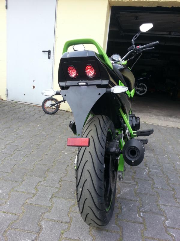 Ich hatte damals nen LED Rücklicht von louis mit ner selbstgebauten Halteplatte. Die Platte war so gebaut, dass das Rücklicht nicht raussteht sondern versenkt ist.