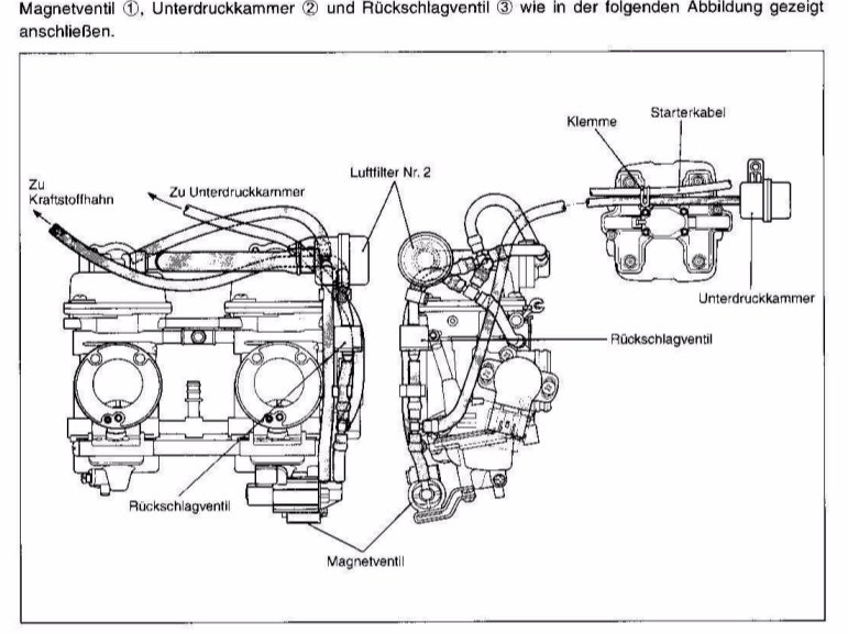 Möglicherweise hat auch die Schiebermembrane im Vergaser einen Riss oder sowas. Alles deutet darauf hin, das er zu schnell zu macht und zu langsam wieder auf (genau das sollte aber das PAIR verhindern). Alles Probleme die mit dem Unterdruck nach den Drosselklappen und oberhalb der Schiebermembrane zu tun haben können.... Geh gewissenhaft alle Schläuche durch (Risse, Knicke!) und sieh dir die Ansaugstutzen an. Zylinderseitig sind O-Ringe verbaut, die aus Temperaturgründen gerne hart werden. Sieh auch nach ob die Anschlüsse fürs Synchronisieren dicht sind..... |
