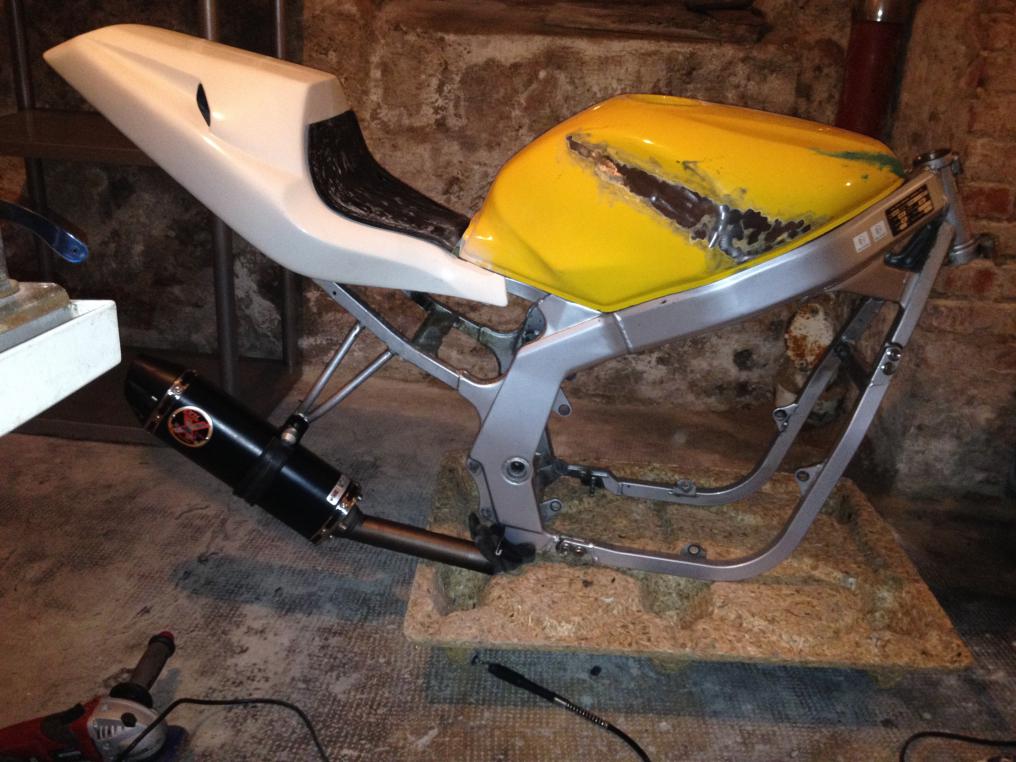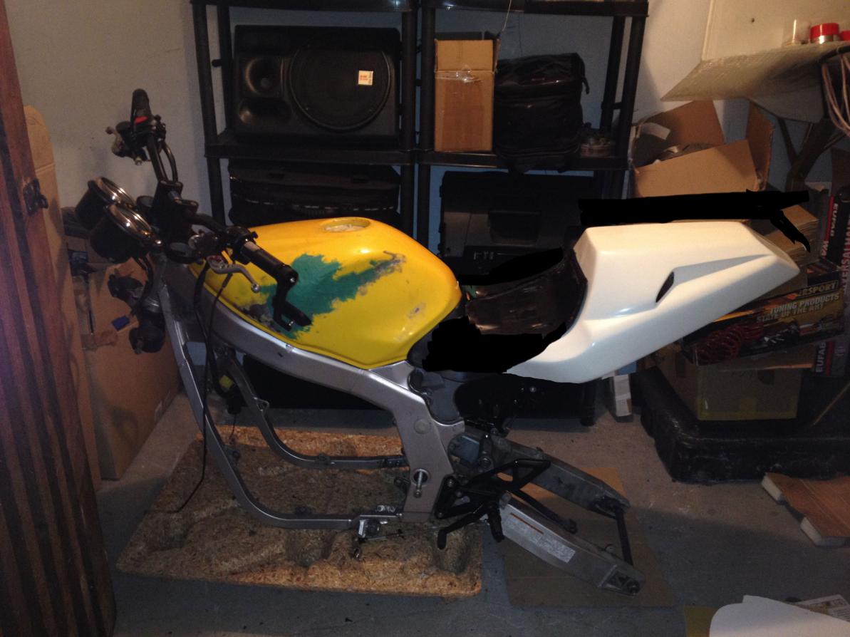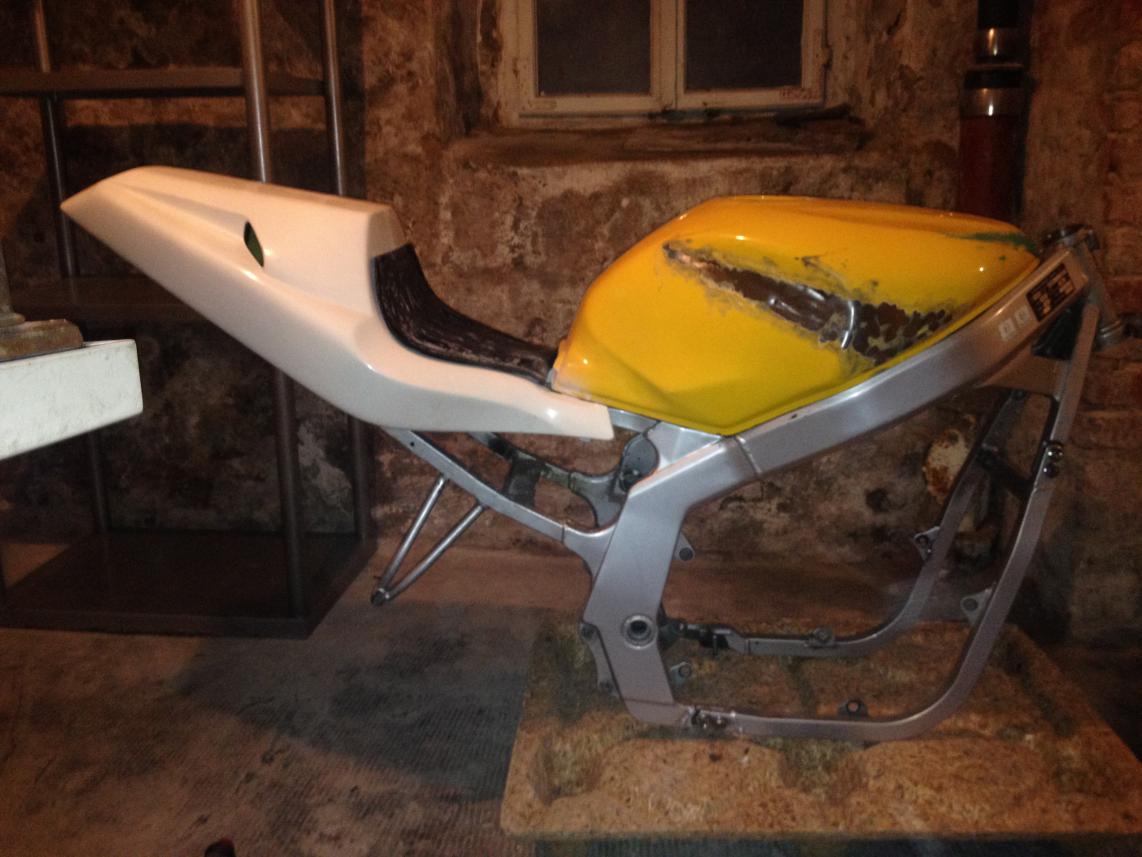 Edit: Der Rahmen hat mir jetzt inkl. Versand 150€ gekostet. Eingetragen sind RGV-Gabel, Bugspoiler, Heckumbau (Mito), Stahlflexleitungen, Soziusrasten ausgetragen, Fußrasten nach aussen versetzt, Spiegler SBL, B6 Schwingenumbau - was die Eintragungen alleine schon kosten! Vom Heck umschweissen ganz zu schweigen. Bin der Meinung es war ein guter Deal! |