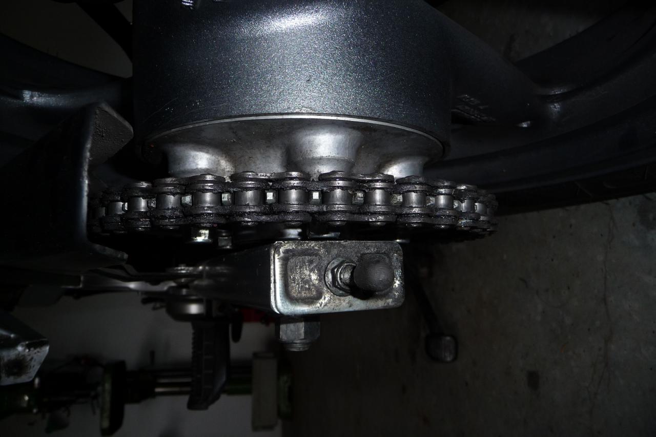 Gsmattis hat recht. Das mit der Bremsankerstrebe wird er dir nicht durchlassen. Reifen ausrichten und Kette spannen ist da nichtmehr.