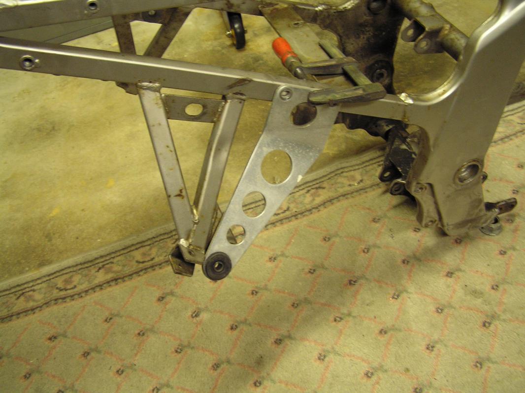 Der Rest passt auf Anhieb. Das Bremsstempeln und die Absenkung des Heckes nach Lösen der Bremse fällt auch komplett weg, da die Bremszangenstrebe am Rahmen montiert wird.