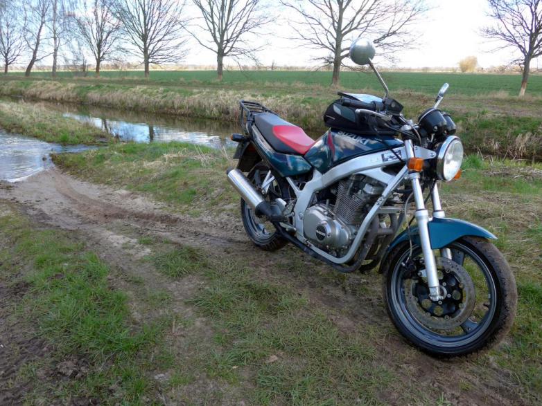 So hatte ich eine lila "Purple Haze". Jetzt fahre ich ja eine GS500F; weil die GPZ500S leider nicht mehr produziert wurde und weil ich zufrieden mit der GS500EUS war.