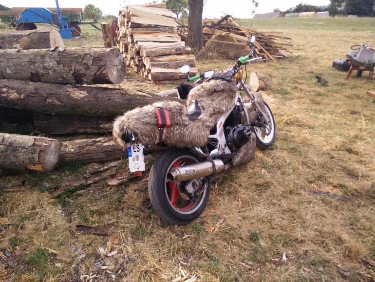 Da muß ich doch grad spontan mal eine Frage raushauen, gibt es eigentlich irgendwelche Vorgaben (vom TÜV oder so) bzgl. eines Fells oder whatever, wenn man das auf's Mopped kleben will? Also zB betreffs Feuerfestigkeit oder sowas? Oder kann/darf man sich einfach das draufkleben, was einem gefällt, ohne irgendwelche Richtwerte beachten zu müssen?