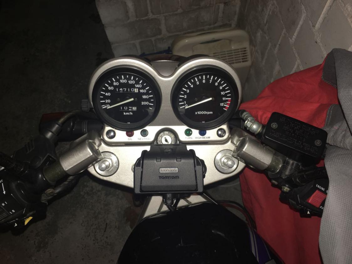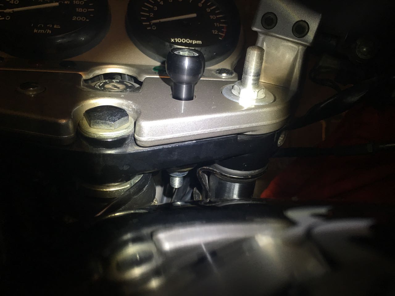 Bin gerade in dieses Thema gestolpert, da ich ebenfalls auf der Suche nach einer praktikablen "Stummel-kompatiblen" Lösung für mein Rider (v4) war. Habe es dann letztlich wie hier beschrieben gemacht. Also einer der beiden Schrauben der Gabelbrücke raus, und mit der RAM M10-Kugel, 90er Zylinderkopf-Inbusschraube und selbstsichernder Mutter wieder rein. Absolut easy, wenn man die Originalschraube einige Zeit in WD40 badet. Strom habe ich vom Standlicht direkt unter die Gabelbrücke geführt. Anbei ein paar Bilder dazu: Viele liebe Grüße! Moras Geändert von Moras (29.02.2016 um 18:29:17 Uhr) |