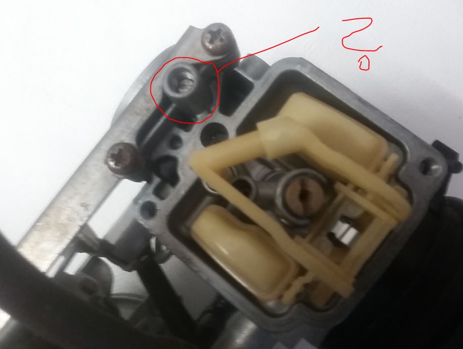 Die markierte Schraube ist die Gemischschraube.