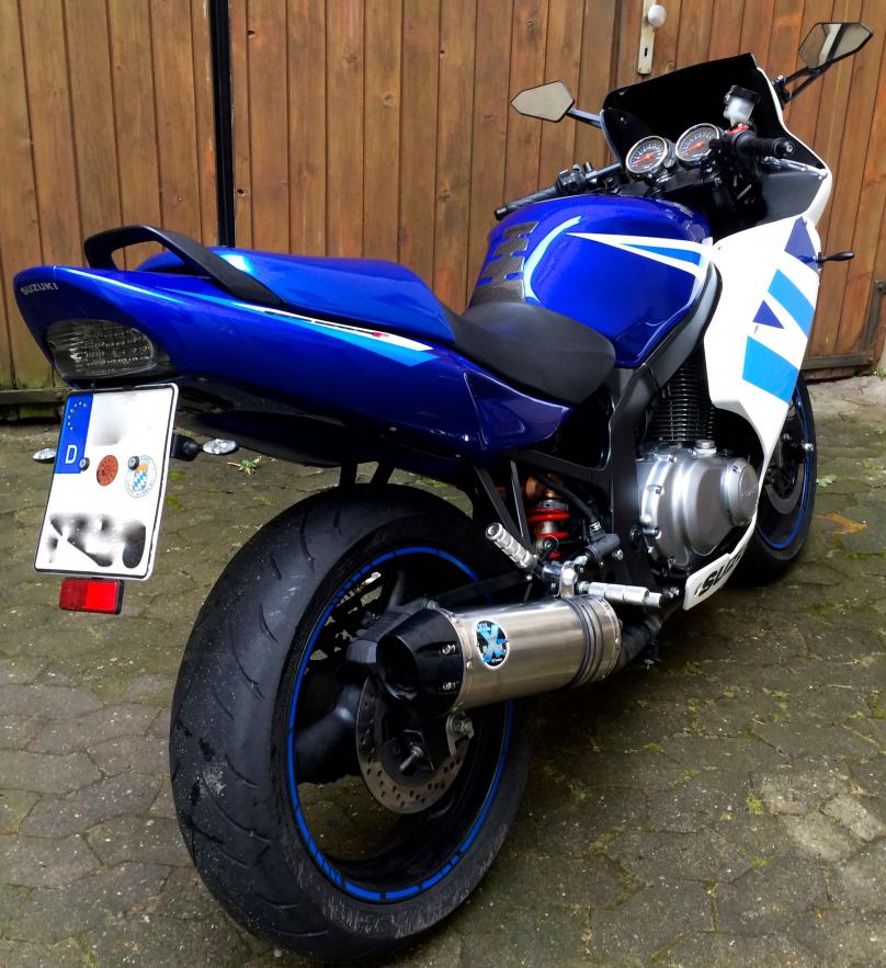 Aber ich hab schon alle Vorkehrungen getroffen. Mit 2,5m2 Klebefolie von der Werbetechnik kann ich meiner Kreativität jetzt freien lauf lassen. Dennoch möchte ich es einfach halten - keine komplizierten Muster. Der erste Entwurf ist stark an das Original angelehnt (den Suzuki Schriftzug noch dazudenken) Update Bei der gelben ist jetzt das Ventilspiel eingestellt. Der Auspuff frisch schwarz lackiert. Geändert von Russedeluxe (13.06.2016 um 18:59:10 Uhr) |