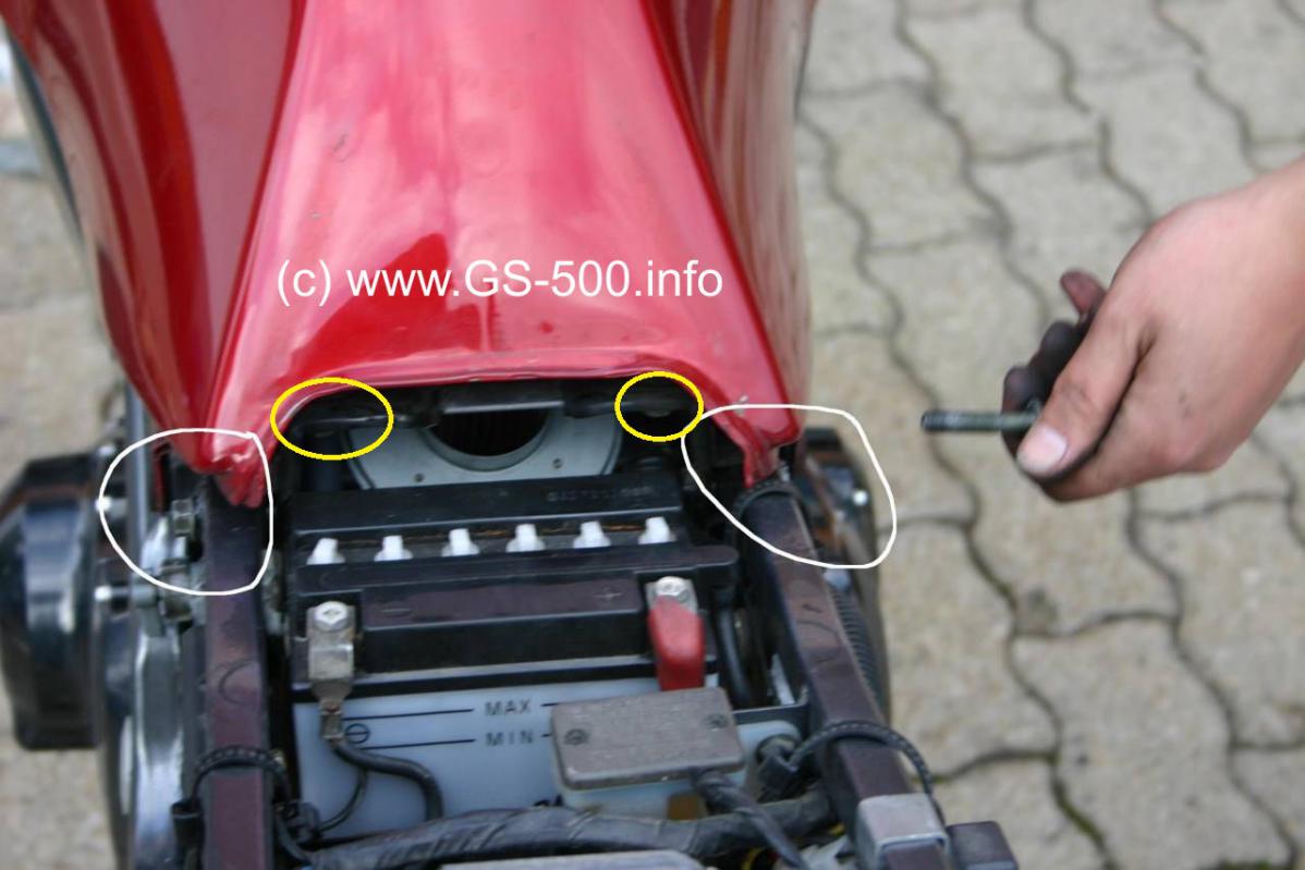 Tank an den richtigen Schrauben aufschrauben, Tank abziehen und dann kommste unten, gelb markiert, besser dran.