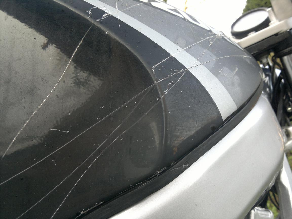 ja war dumm, aber da nun fotos schon gemacht wurden von mehreren leuten, polizei, suzi händler und zeugen, denke ich , dass ich die kratzer nun ein wenig anschleifen kann um richtig rostbehandlung und vorsorge betreiben kann.