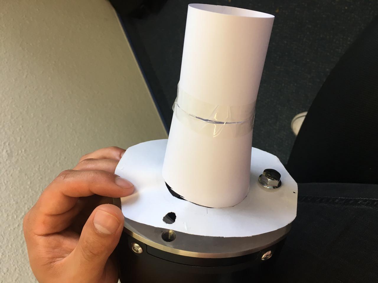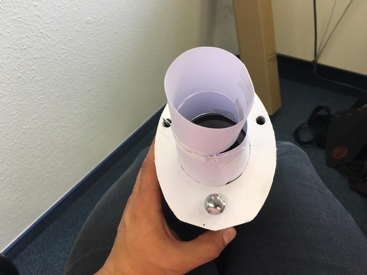 Tesafilm find ich auf jeden Fall ne adäquate Lösung um die beiden Papierrohre aneinander zu schweißen.