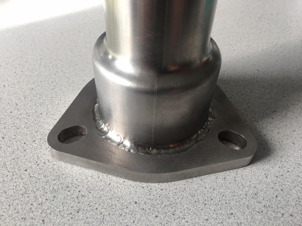 Meine Idee ist es nun aus einer Ankerplatte (1cm dick aus Stahl) einen Adapter anfertigen zu lassen. Da die Öffnung vom ESD 60mm groß ist und der Krümmer einen Durchmesser von 45 mm will ich den Unterschied mit einem Rohr, welches sich verjüngt ausgleichen.