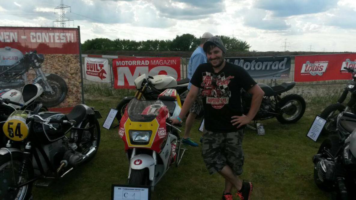 Kleines Resümee: Hammer Rennveranstaltung mit alten Zweitaktern, Vorkriegsmaschienen, CafeRacern und coolen Eigenbauten! Nächstes Jahr komme ich definitiv wieder...und das mit allerhöchster Wahrscheinlichkeit als aktiver Fahrer!!! ![]() Den Contest haben natürlich, wie erwartet, die High-Class Umbauten gewonnen. Da hatte meine, wahrscheinlich die einzige welche im Alltag bewegt wurde, mit ihren Schrammen und ihrer ganz eigenen Patina, kaum eine Chance. Und geschummelt wurde auch....hab z.T. Leute gesehen, die in den Wahlkasten gleich mehrere Zettel eingeworfen hatten ..Naja, was soll es, hatte trotzdem Spaß und meine "Lucky" ist auf viel Zuspruch und Anerkennung gestoßen. Gab natürlich auch einige, welche die Nase gerümpft hatten, aber man kann ja nicht jedem gefallen.