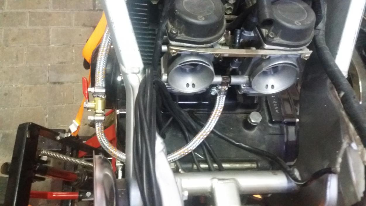 Neue Stahlflex Spritleitungen verbaut vom Tank zum Benzinhahn und vom Benzinhahn zu den Vergasern.