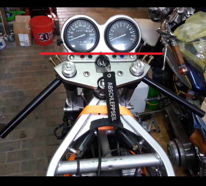 Werde ich vermutlich wie auf dem angehängten Bild absägen damit die Kontrollleuchten erhalten bleiben und den oberen Teil durch einen kleineren Digital Tacho ersetzen der sich besser ins Gesamtbild einfügt. Die Drehzahl Anzeige wird dann vermutlich komplett außer Betrieb genommen. |