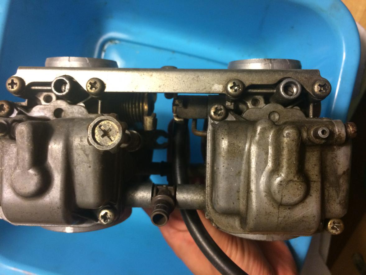 Wenn du mit dem Kreuzschlitzschraubendreher nicht weiter kommst, nimm eine Zange. Die Zähne, so dass sie axial in den Kopf greifen, dann bekommst du die auch auf, wenn der Kreuzschlitz vermurkst ist, bzw. du musst den Kreuzschlitz erst gar nicht vermurksen. Die Zange selbst weist dabei natürlich im 90° Winkel zur Schraubenachse. Und immer daran denken, links rum gehts auf, rechts rum zu. Ich hoffe du verstehst das, so wie ich es meine. Die verschiedenen Scheiben an der Düsennadel könnten möglicherweise der Versuch sein, die Vergaser abzustimmen. Da die Nadeln nur ein Verschieben durch die Nuten ermöglich, kann man mit verschieden dicken Unterlagscheiben die Nadeln in Zwischenstufen in der Höhe variieren. Ich würde aber alles auf Werkseinstellung setzen. Trotzdem sicherheitshalber alles aufbewahren und notieren was wie verbaut war.