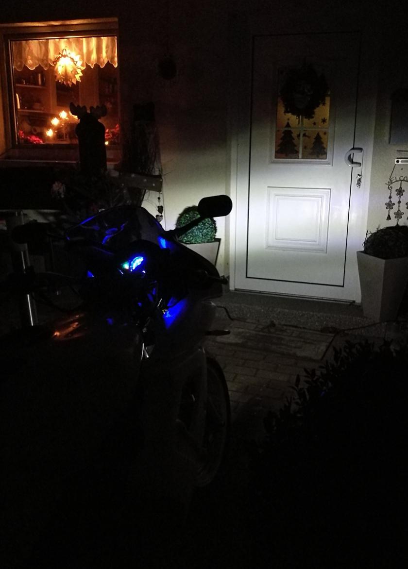 Scheinwerfer geht wieder auf die Straße runter, Federbein hinten hab ich gleich die Vorspannung auch wieder berichtigt.