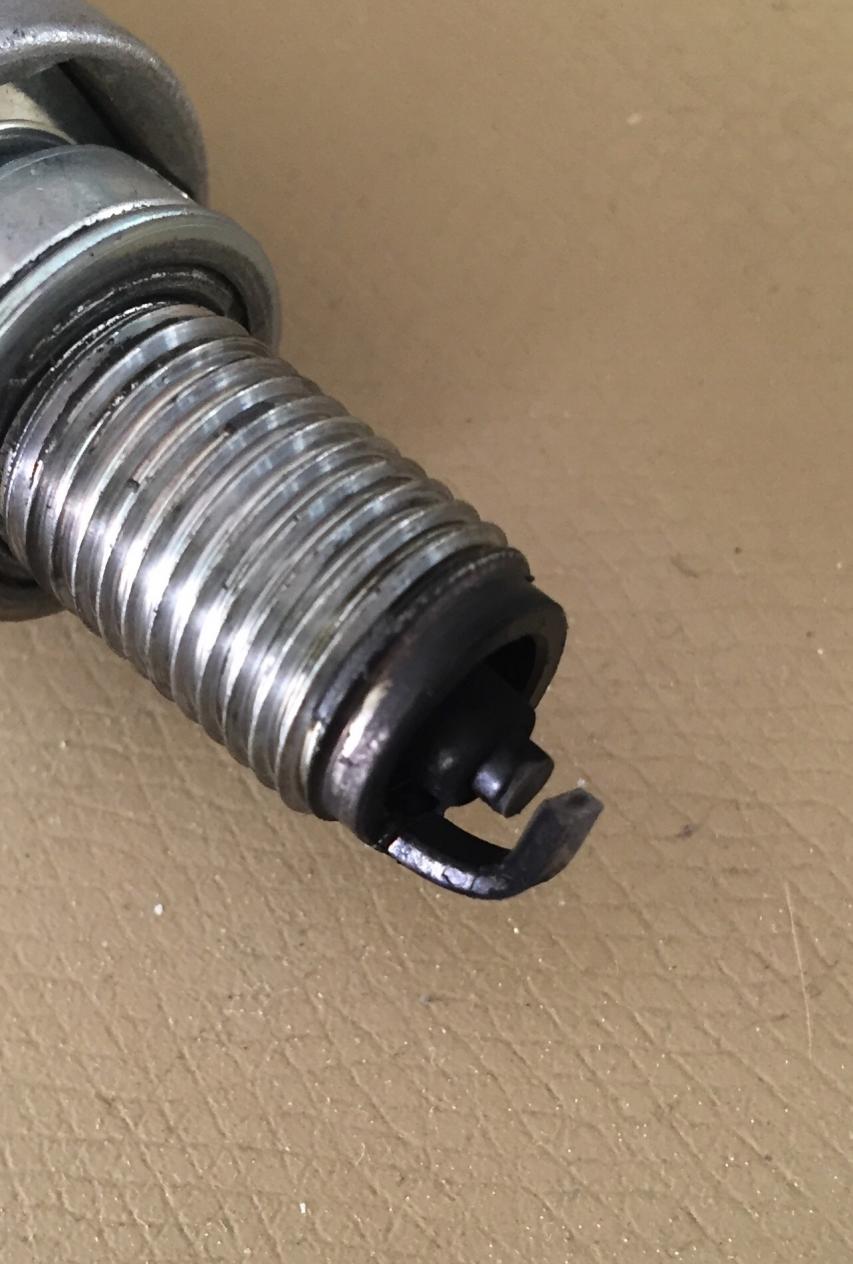 Die Kerze die leicht abgewinkelt ist auf dem Bild ist aus dem linken Zylinder.