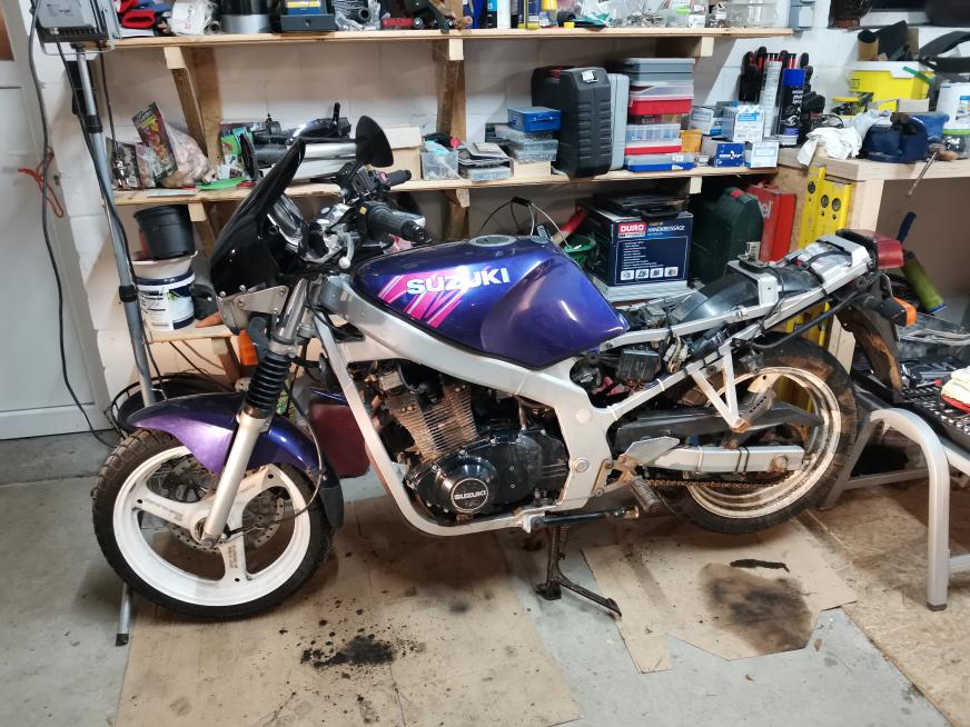 Die GS500 meiner Frau ausgewintert. Bei der Probefahrt festgestellt, dass eine Schwimmernadel hängt. Tut sie jetzt nicht mehr, aber der TÜV ist trotzdem seit Oktober abgelaufen... Ups...