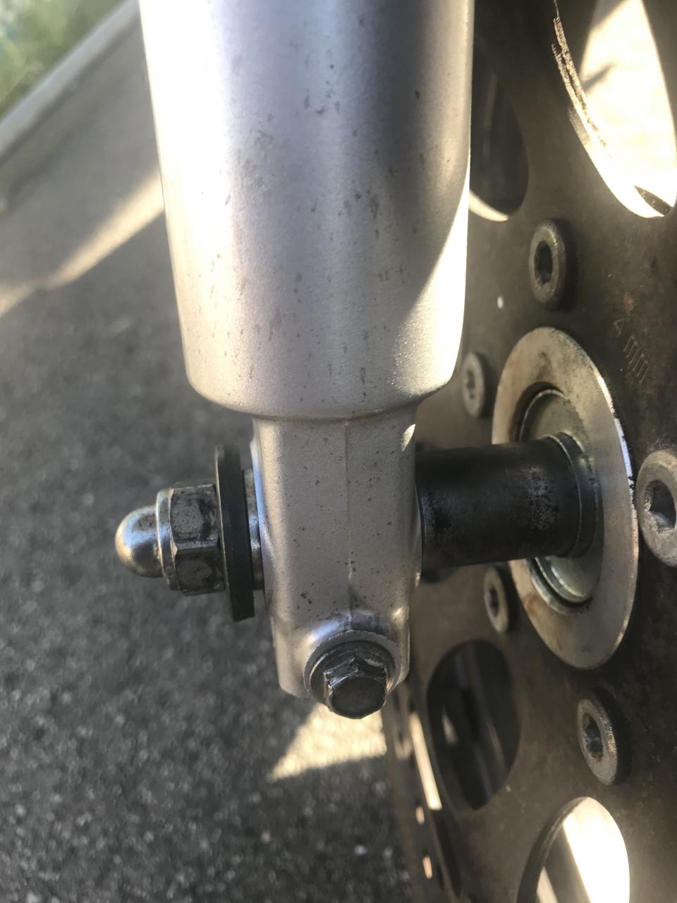 ich habe am Wochenende meine Gabel ausgebaut, neue Simmeringe eingebaut und in dem Zuge auch noch progressive Federn verbaut. Das hat auch alles gut geklappt. Beim Wiedereinbau des Vorderrades ist mir aufgefallen, dass das Distanzstück, welches in der Lochdurchführung vorne rechts sitzt, jetzt weiter raussteht als vorher. Dadurch liegt die Unterlegscheibe auch nicht mehr auf dem Tauchrohr auf. Ich kriege es nicht hin das wieder reinzudrücken. Weiß jemand was ich machen muss? Anbei einmal ein Foto, damit man weiß wovon ich rede. Beste Grüße |