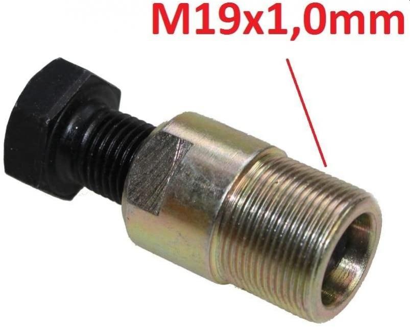 habe unten ein Bild reingehängt - denke dass dieser passen sollte!? auch wenn Tommster seit 5 Jahren hier nicht mehr ist - dennoch ein Beitrag von mir. Sein (Mopped) BJ ist mir nicht ganz klar - es ist in seinem Profil auch nicht ohne weiteres zu finden (gewesen) aber soweit ersichtlich setzt er auf diese Technik hier beschrieben: http://gs-500.info/index.php?title=Polrad_abziehen soweit ich das sehe, geht diese Methode m.E. auch bei neurern Bikes (/Baujahren - wie etwa 2000). diese Technik - hier bechrieben: https://www.youtube.com/watch?v=GxS5yZ44AHU vgl. Polrad-Demontage bei 11:20 - Demontage des Polrads - auch ohne teueres Werkzeug - was man nimmt 36 mm Distanz (spacer) und eine m19/1 Schraube - 5 bis 6 zoll lang; - Die dahinterliegenden Anlasserfeilauf-Menchanik-Dinge und deren erlaubte Drehrichtungen und und und Fazit: toller Film Diese Teile hab ich schon da - bis auf die M19/1 Schraube. Frage - würdet ihr denn ggf auch noch - zur Sicherheit - ein Zweites-Tool hinzuziehen; Habe hier noch einen Abzieher entdeckt - bin aber nicht sicher ob der denn passt: https://www.conrad.de/de/p/polrad-ab...803865808.html Polrad-Abzieher | M19 x 1,0 Bestell-Nr.: 803865808 - VQ Hst.-Teile-Nr.: 7748-G EAN: 4048769045920 Freue mich auf einen Tipp. |