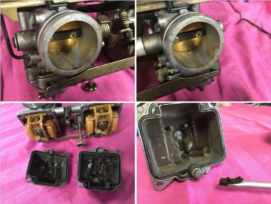 Meine gerade erstandene GS 500 lief ja gar nicht soooo schlecht, bis auf die magere Leistung über 7.000 rpm und der komische Leistungsschub, wenn man aus längerem Vollgas den Hahn langsam zudreht. Nach der daraufhin veranlassten Vergaserreinigung lief sie gar nicht mehr - meine Vermutung: abgemagertes Gemisch im rechten Vergaser. Eine zweite Reinigung über einen Kontakt hier im Forum brachte keine Besserung. Der Kauf von Colour Tune Zündkerzen bestätigte meine Vermutung. Rechts stimmte das Leerlaufgemisch erst bei 4 Umdr. geöffneter Leerlaufschrauben Der Ersatzvergaser aus einer Maschine, die bis zu einem Motorschaden super lief, erzeugte ein noch magereres und unfahrbares Gemisch. (Inzwischen bin ich davon überzeugt, dass die durchgebrannte Zylinderkopfdichtung vom Vergaserproblem verursacht wurde.) Der dritte Vergaser, mit dem die Spendermaschine tatsächlich noch lief, sah beim Zerlegen erbärmlich aus (ich habe mal ein paar Bilder gemacht um zu zeigen, womit eine GS immer noch lauffähig ist). Mit einer mechanischer Reinigung und verbautem Reparaturkit funktioniert meine GS 500 endlich wieder so wie zu Beginn. Nach der Vorgeschichte wieder zum Thema: Vorletztes WE: Mit dem dritten Vergaser die Mopete ans Laufen gebracht und Probefahrt über ca. 80 km gemacht. Kalte Finger bekommen, aber sonst ganz OK, ab 7.000 rpm kommt wenig Leistung und nach einer Weile Vollgas geht sie sogar aus. Ich vermutete Benzinmangel und habe einen neuen Benzinhahn bestellt. Letztes WE: Neuen Benzinhahn von Tourmax eingebaut Gestern und vorgestern: ca. 160 km gefahren und das Problem mit dem Leistungseinbruch bei Vollgas ist weg. (Aber Leitungsangebot ist immer noch "überschauber". Vielleicht weil ich > 100 PS gewöhnt bin) Weil ich faul bin, hab ich mir aus einem Halter für kleine Anstreicherrollen einen Schraubenschlüssel angefertigt, mit dem sich der Benzinhahn am Tank schließen lässt, ohne den Tank anheben zu müssen. Zitat: