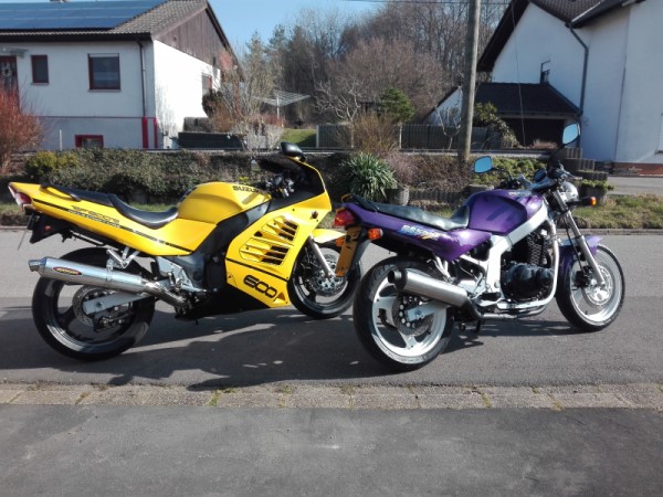 Vergaser von der Suzi eines Freundes getauscht, Kupplung eingestellt und eine 20 km Probefahrt (2 Bikes) absolviert.
