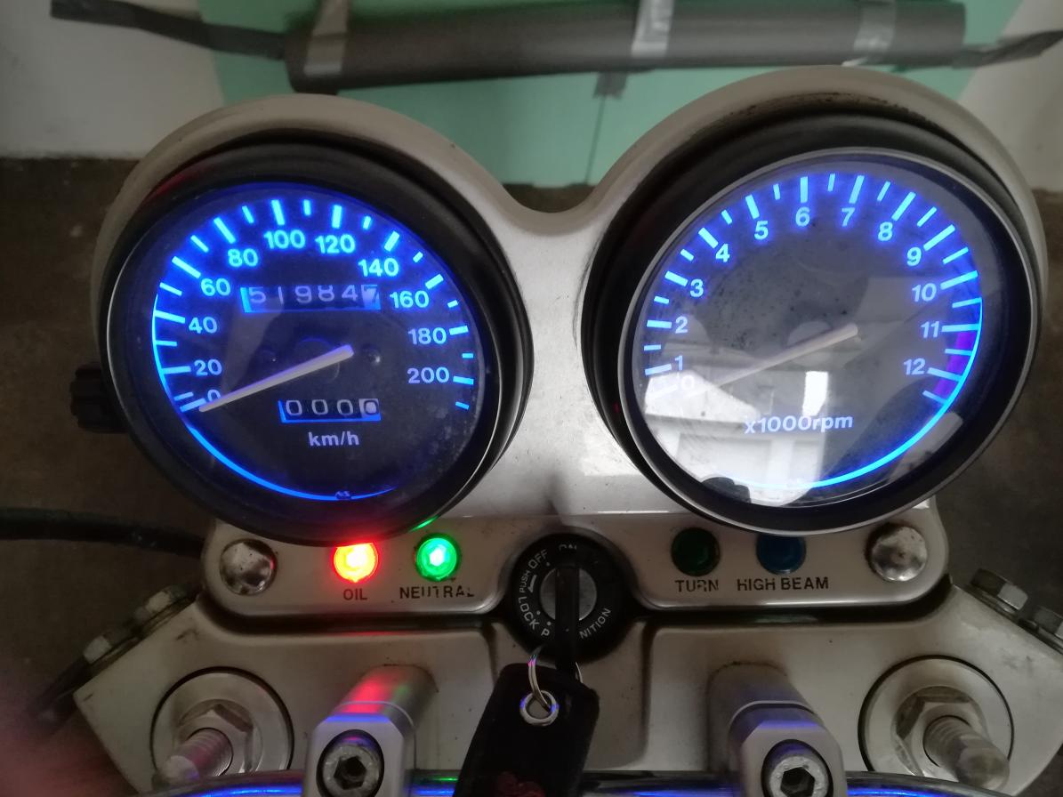 Der Kabelsalat gehört in den Rundscheinwerfer. Ansonsten macht es zumindest Sinn den Schwimmerstand der Vergaser zu überprüfen und ob die Nadelventile noch dicht sind.