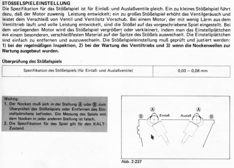 b) Zum Ventilspiel: werde am Wochenende wenn möglich nochmal nachmessen und detailliert protokollieren...