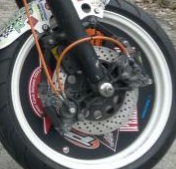Ich hab die Bremse vorne neu gemacht und damit gesehen, dass es die Felge hergeben würde eine zweite Scheibe zu montieren. Zusammen mit einem zweiten, rechten Standrohr (habe ich liegen), einem Bremssattel, Schlauch und einer "verdoppelten" Hohlschraube am Hauptzylinder wäre das technisch wohl kein großes Problem.