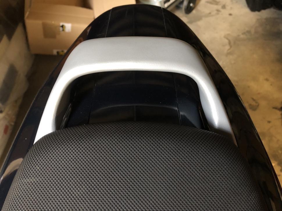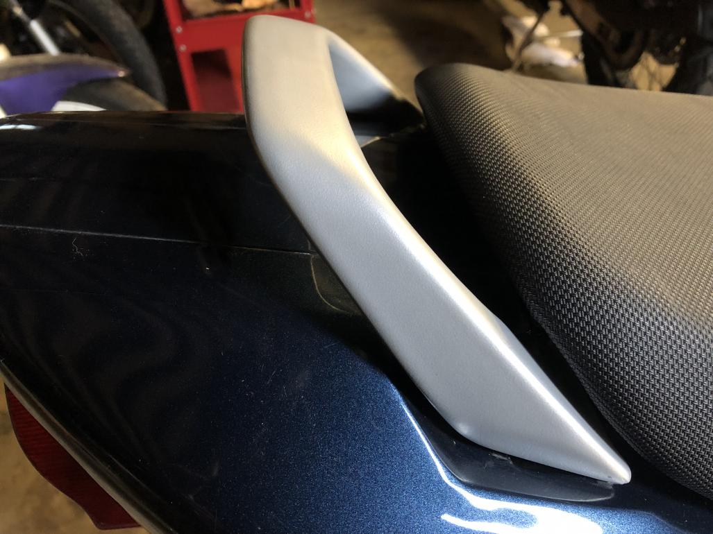 Da hätte ich beinahe vergessen, die versprochenen Bilder zu liefern… Habe ich doch einen schicken Soziusgriff für das Würmchen bekommen, dem sein Original ja geklaut worden war… Gebrauchte Soziusgriffe für das Faceliftmodell sind schwer zu kriegen, aber zum Glück passen die vom alten Modell auch. Das ganze dann noch in der richtigen Farbe und schon fällt es gar nicht mehr auf.