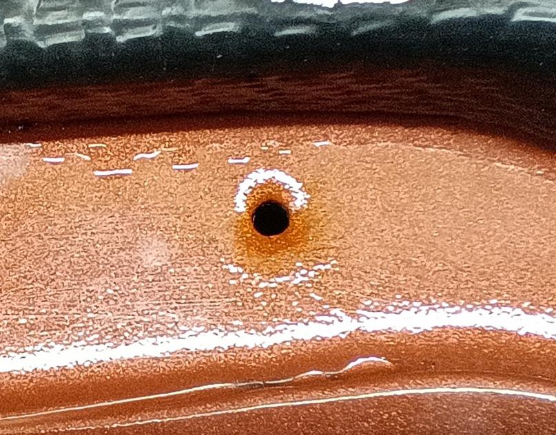 Ist das Loch mitlackiert worden? Ist auf dem Foto nicht wirklich zu erkennen, aber dann hätte das ja schon beim Lacken vorhanden sein müssen?!