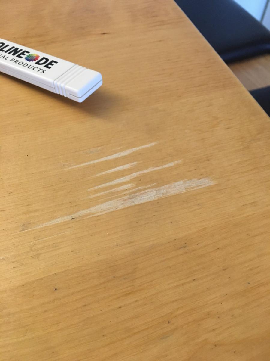 Du könntest jetzt deiner Frau die Schuld daran geben das sie immer zu agro und nass den Tisch abwischt ( ganz schlechte Idee) oder ihr sagen das du einen Vorwand suchtest um einen neuen Tisch zu kaufen.