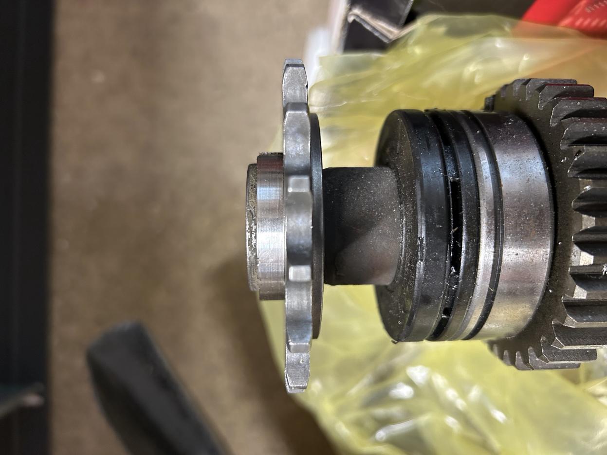 Meine ausgeschlagene Abtriebswelle für einen letzten Einsatz fit gemacht. Aus dem alten Ritzel einen Adapter gedreht, das ganze mit dem neuen Ritzel auf einer IO Welle ausgerichtet verschweißt und anschließend noch endfest mit der ausgenudelten Abtriebswelle verschweißt.