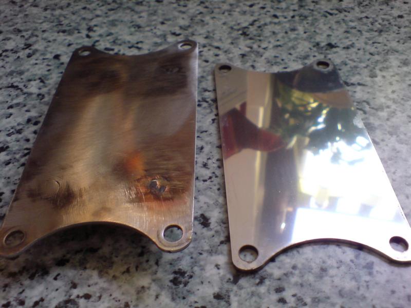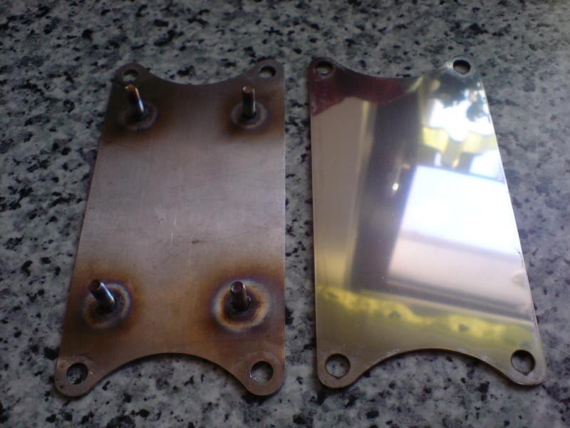 So Männers, der Gabelstabi ist auch endlich fertig. An dem "unteren" sind jetzt 4 Edelstahlschrauben (ohne Kopf...) angeschweißt, der obere wird dann draufgelegt und beides zusammen verschraubt. Beide sind aus lasergeschnittenem Edelstahl.