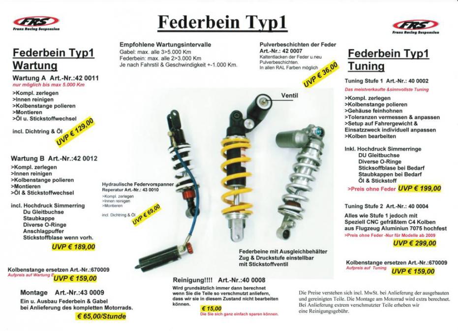 ...und alternativ zum Neukauf bietet sich ja auch immer noch die Instandsetzung vorhandener gebrauchter Dämpferelemente und/oder die Anpassung aufs Fahrergewicht durch Austausch der Feder an
