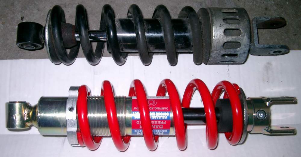 Ich habe in der Bucht dieses Hagon für die Suzuki GSX`R 400 aus den 80ern günstig gekauft,passt 1:1 und die Zugstufe und Federvorspannunmg ist einstellbar,mit anderen Gabelfedern ist das Fahrwerk Solo und mit Sozia ein Traum.